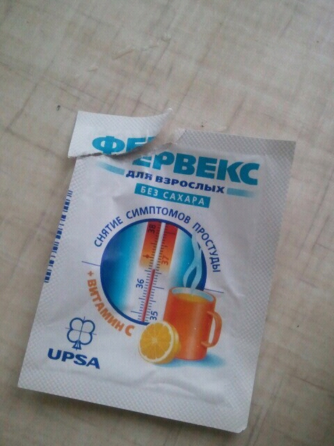 こういう総合感冒薬も飲みます。お湯に溶いて飲むと眠くなります。
