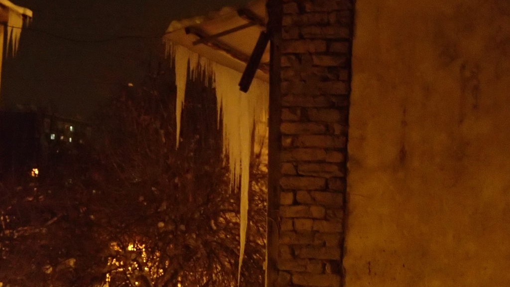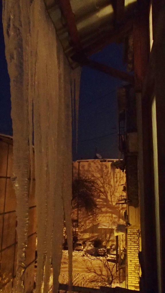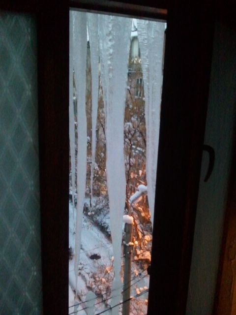 帰り道をあるきながら、ふと近所の窓を見上げると立派なつららが下がっていた。どの家も。