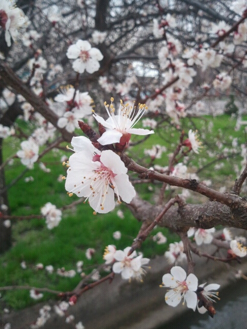 街にはあちこちに杏の木があって、このあと花が散って、初夏には食べ頃になります。いろんな種類の杏が木からもいで食べ放題。