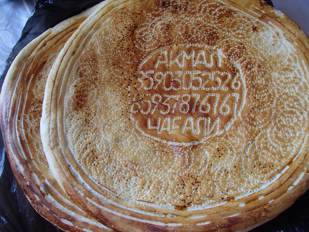 あと、パンの中央の刻印を見て欲しいのですが、アクマルさんというお店の屋号と、電話番号が刻印してあります。