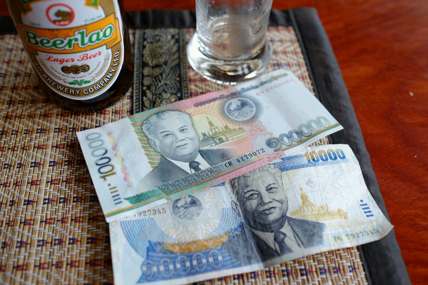 10分くらい歩くと第一銀行発見!ATMでお金も下ろしました。300,000キープって単位がよくわかんないけど、30ドルくらいらしい。100,000キープ札が3枚だけぺろっと出てきて、あらあら。その後窓口で細かくしてもらいました。