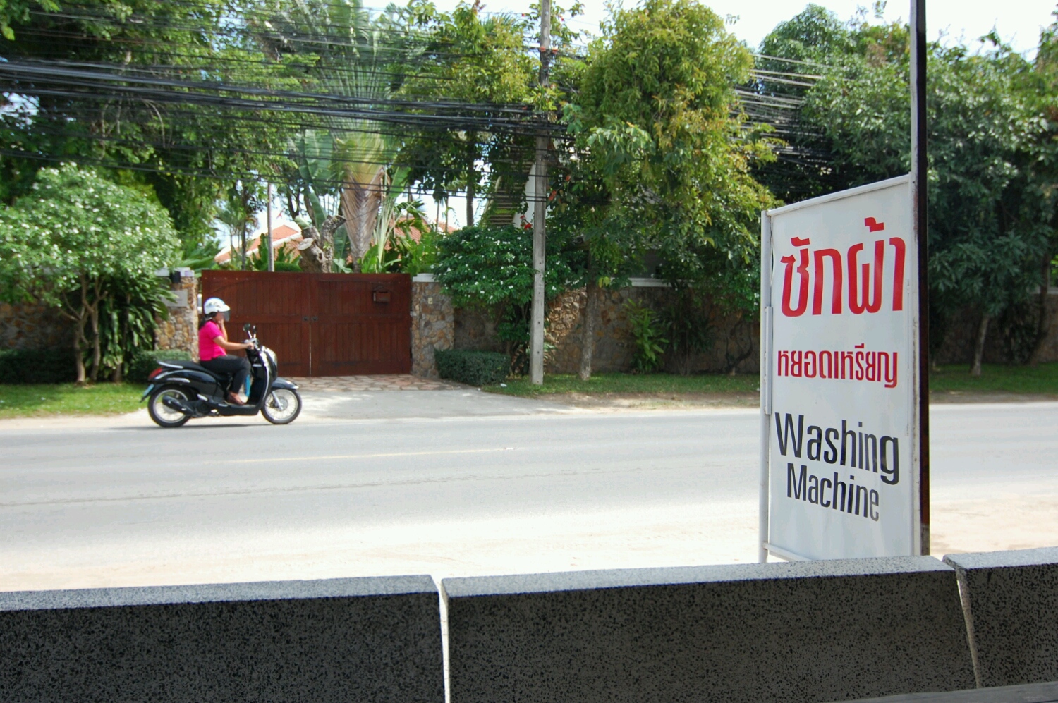 旅行していると、洗濯物にいつも頭を悩ますのだけれど、サムイ島だとあちこちに、コイン式の洗濯機があって、洗剤だけ持ち込むといつでも洗濯できるようになっています。一回分の洗濯洗剤はあちこちの7-11に売ってます。これはとても良い。いろんな大都市に行ったけど、この便利なシステムのある街は少ないと思います。