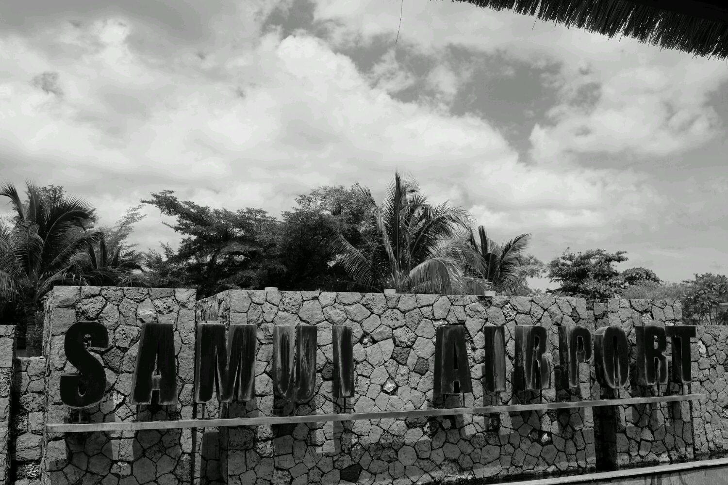 サムイ空港は、本当に掘っ建て小屋みたいな感じで、わらぶき屋根の、冷房のない空間でした。オープンエアの待合室ってはじめてで、なんかどきどきします。