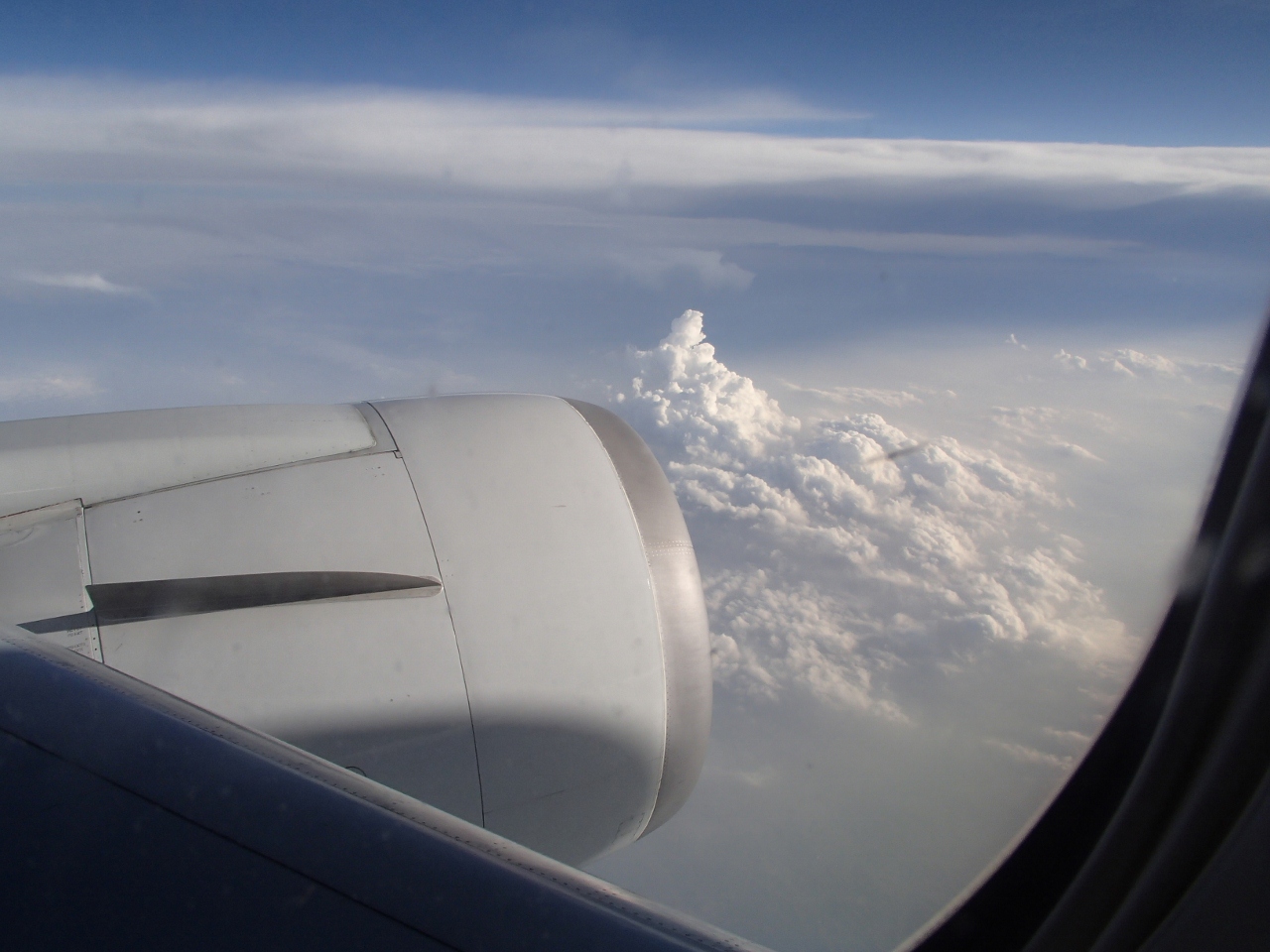 韓国ソウルの仁川空港から7時間のフライトは、ちょうど夕日を追いかける形のフライトで、日本時間で言うと17:30から23:00頃までずーーっと夕日の中を飛んでいました。途中、チベットの上あたりを飛んでいたようで、雲の切れ間からヒマラヤが見えました。ヒマラヤって、遠くに眺めるものと思っていたので、うえから見えるっていうのが妙に新鮮でした。