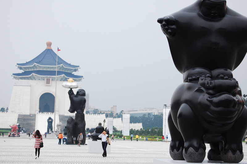 観光地らしい場所にも行ってみる?ということで、中正記念堂へ。大陸に比べて、広々した場所があまり無い台北だけど、ここは広い。気持ちがいい。うっかり広場の縁石に座ってぼんやりしていたら、私服のセキュリティに座らないよう注意されてしまった。どこでも座り込んですみません。台湾中から観光客が訪れているようで、揃いの制服を着た人々がはしゃぎながら写真を撮っていた。