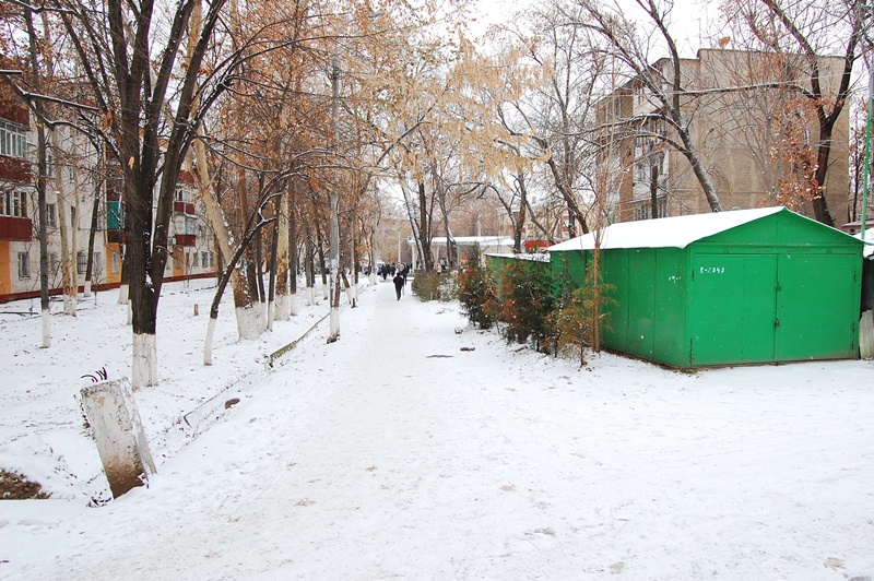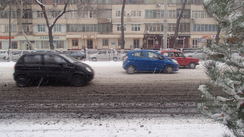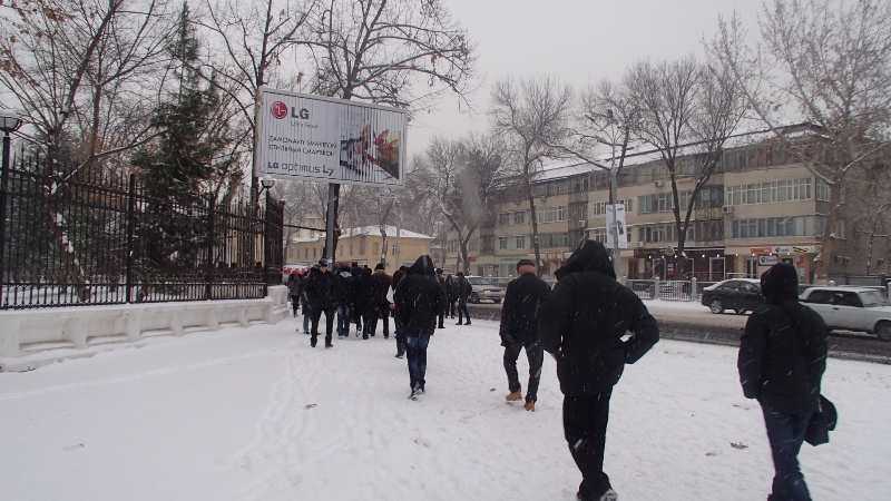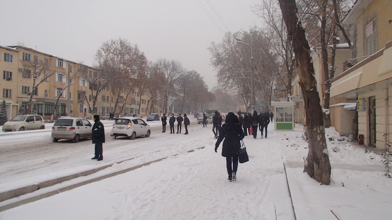 車はチェーンとか冬用のタイヤに付け替えている気配は無い。普段はスピード狂気味のウズベク風ドライブだけれど、雪の日はさすがにノロノロ運転。