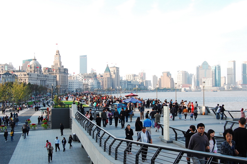 豫園を出て外灘方面に歩いてゆくことにした。この辺りは、高層ビルも建ってなくて非常に中国らしい街並みが残されている。観光地ということもあるのだろうけど、なるべく残しておいて欲しい風景。外灘に出るとこちらも人出が多い。観光客も上海人も外灘に集ってるんだね。夕日を受けて黄金に光るプートンのビル街が、水面に映えてそれは美しかった。時折目の前を通り過ぎるレトロなぽんぽん船とプートンエリアの不思議なコントラストも良い。