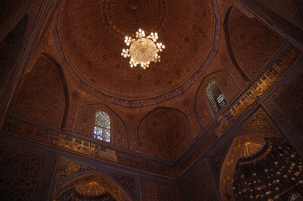 テムール家のお墓。金!*タシケントを出たらウズベキスタンだったウズに来てから9ヶ月、今回はじめて、タシケントを出て別の都市に行ってみて思ったのですが、思いのほかウズベキスタンでした。ウズベク語しか聞こえてこないっていう経験をはじめてしました。タシケントでは、同僚や近所の住人がロシア人とかロシア語話者なのもあるし、街中でもロシア語のほうがよく聞くし、ウズベク人も私にはロシア語で話すので、町並みも相まって、「半分ロシアだな」と思っていたのです。でもタシケントを出たら、