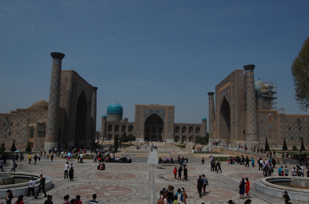 レギスタン広場、ウズベキスタンで一番有名な場所?*結局、サマルカンドでウルグベック天文台、レギスタン広場、グーリ・アミール廟に入場しましたが、毎回外国人料金は