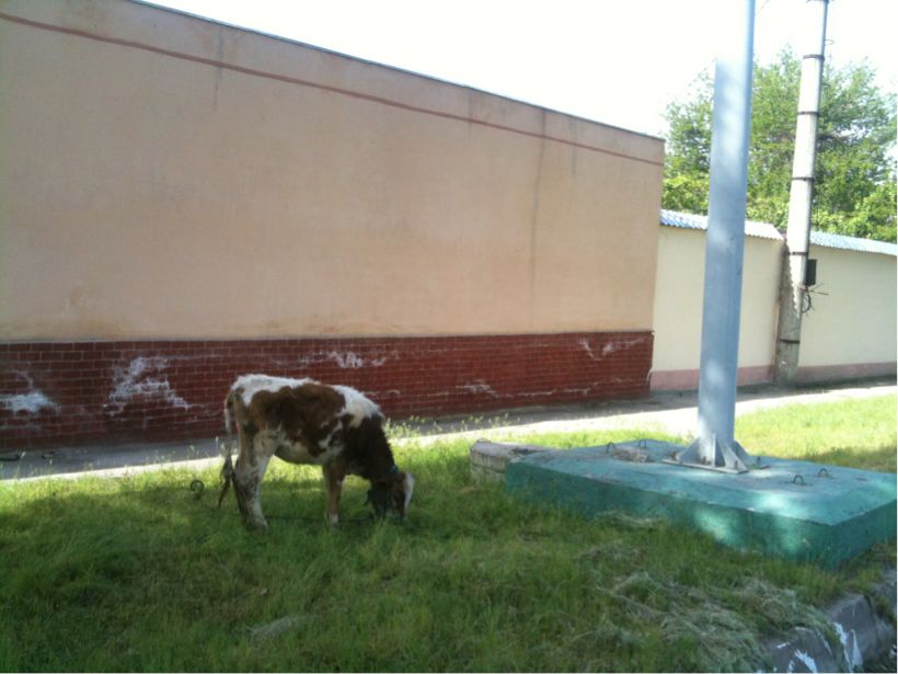 ちょっと休憩中。今朝、通勤してたら道に牛がいました。なごみのジャージー色ですね。