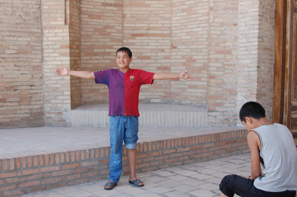 われわれが動くのにいちいちついてきて、いろいろちょっかいを出してくれる。国によっては、子供が勝手に、頼んでもいないガイドをしはじめて、後になってガイド料を請求してきたりするので、子供も相手をしないのがいいんだろうけど、ウズベキスタンの子供たちは純粋に暇だからついてきて、つまらなくなったらじゃーな、と消えてゆく。純真なもんだ。