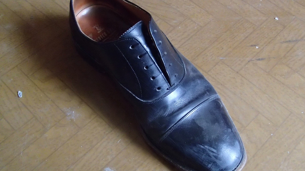 最近、靴磨きをさぼっていたので、ある朝気づいたら酷い汚れだった。