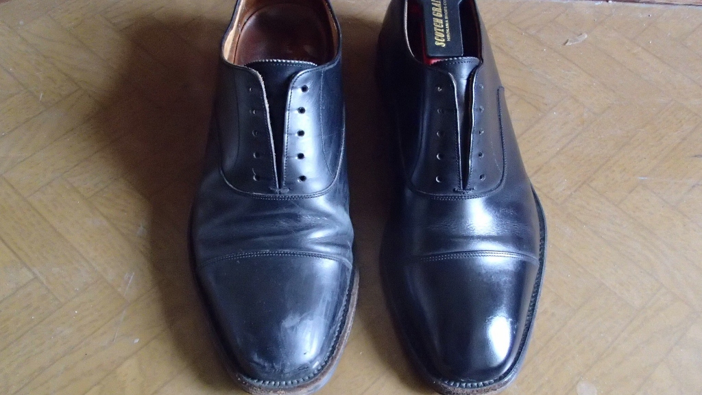 ちなみに、この靴は4万円で、6年前くらいに買って今でも型崩れせず、カッコよい。1万円くらいの靴はだいたい1年で壊れる(履きつぶれる)ので、靴だけはちょっと高いのを買って手入れをきちんとしたほうがコストパフォーマンスが高い。足は滅多に太らないし。