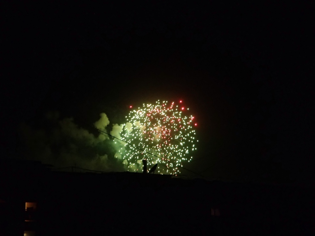 エンディングには花火があがりますが、8階の我が家からは花火の実物も見えます。テレビの画面で花火が上がったので窓の外を見ると、同じ花火がゆらゆらと上がっていて、ああロマンチック。こんなにいい暮らししてもいいのかしら・・・