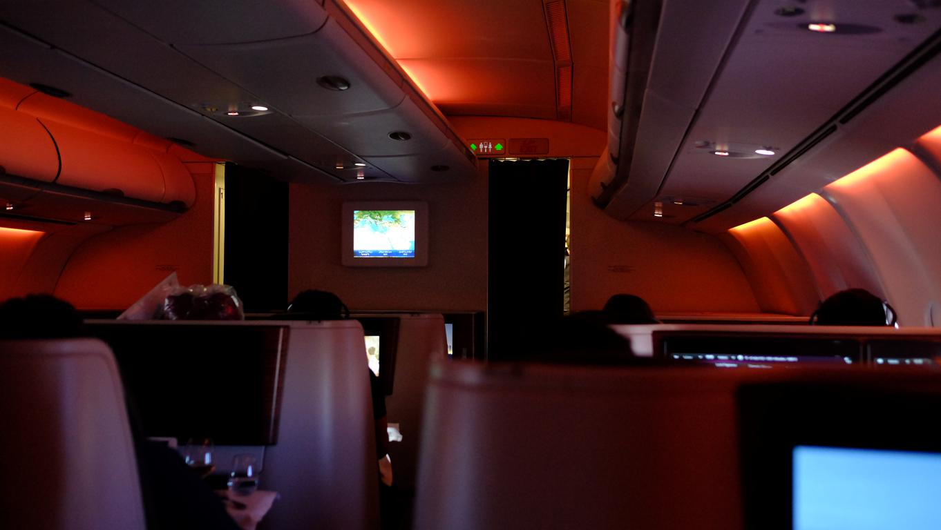 これから(私だけでなく他の客も)メインがサーブされるというのに機内真っ暗。この時点で離陸1時間。